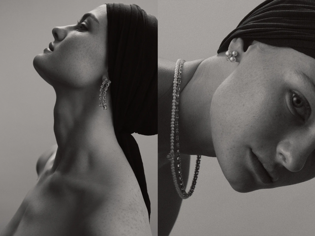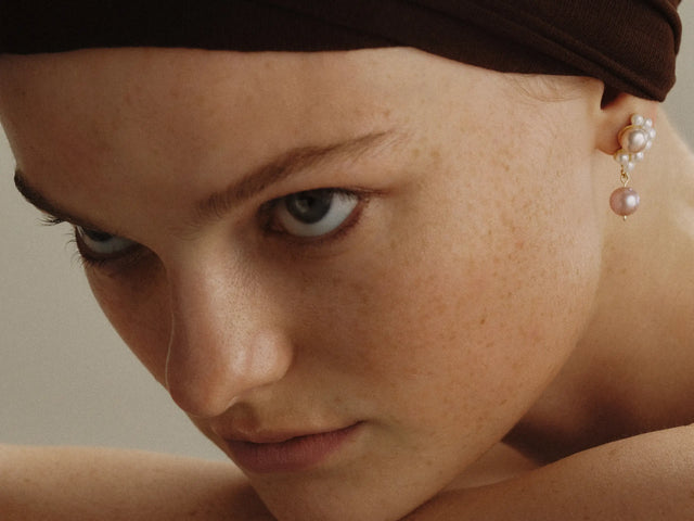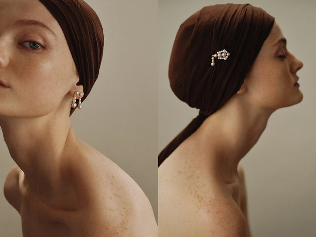 This collection is like a bubble. Rose and white pearls in 9ct gold with a very rare morganite stones. All handcrafted in Warsaw, Poland.